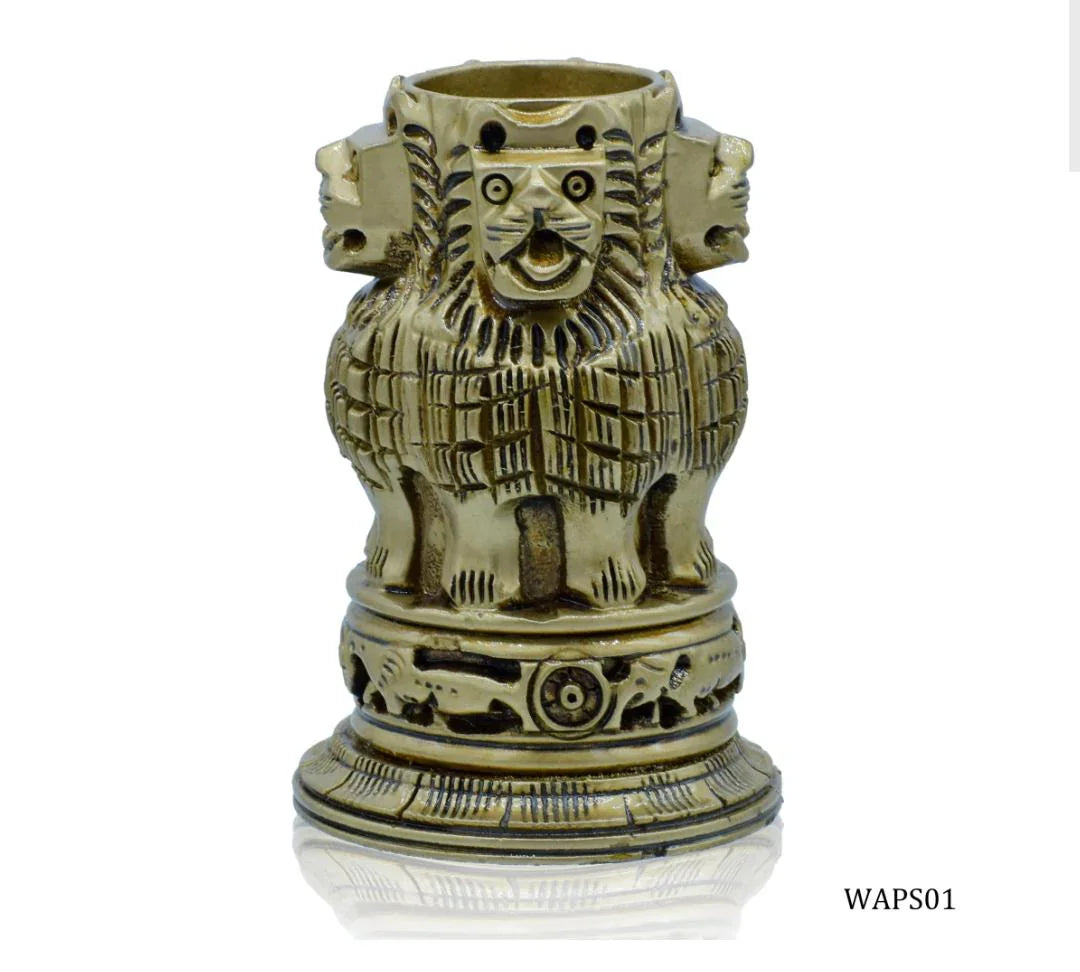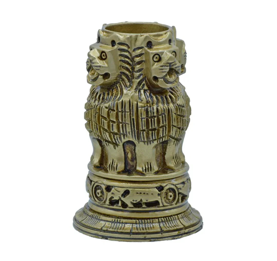 Wooden Ashoka Pen Stand – Antique Colour, 4 Inch