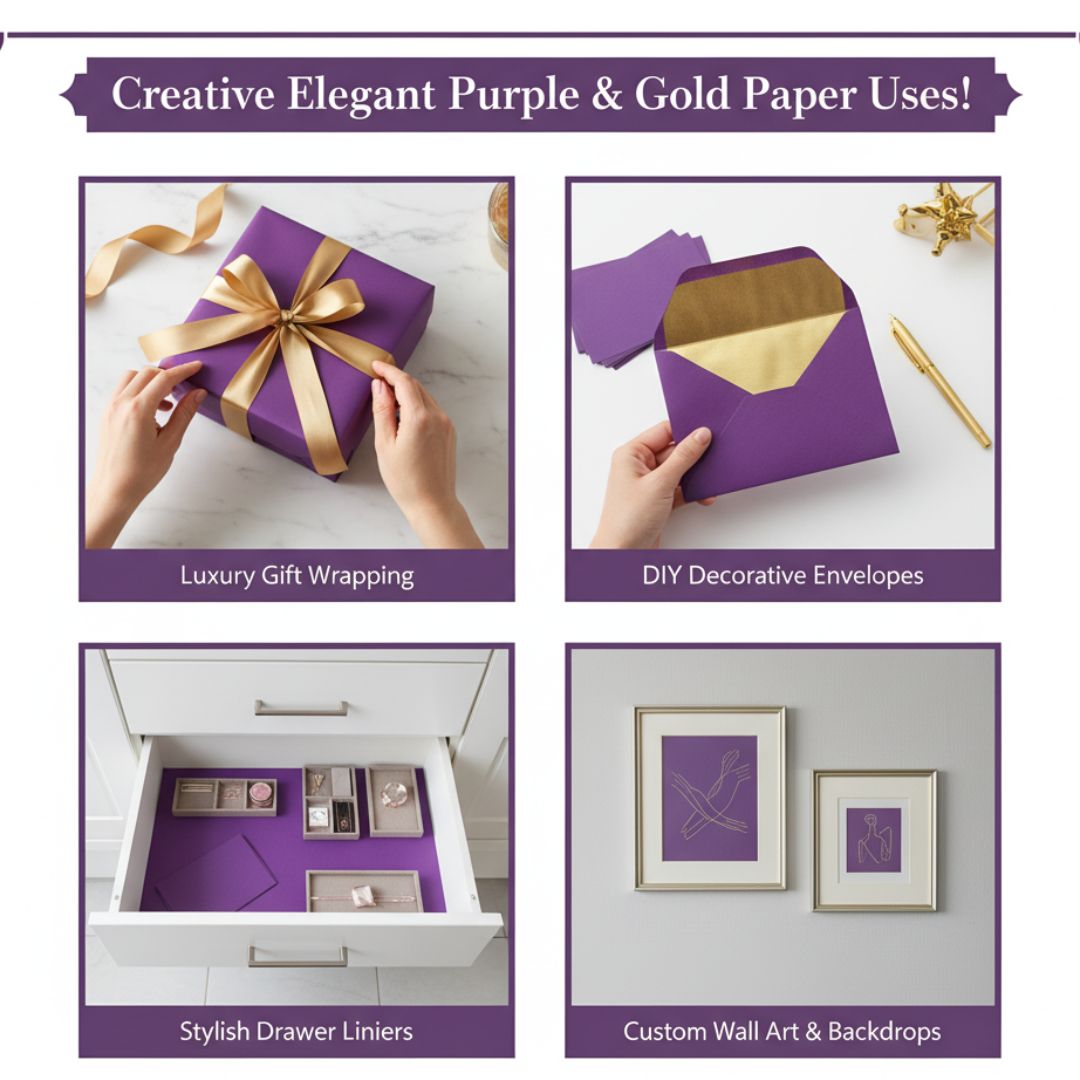 Premium Purple & Gold Wrapping Paper Sheets | 20 Pack Gift Wrappers