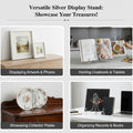silver frame stand, metal display holder, photo frame easel, tabletop display stand, iron plate stand, art frame holder, decorative display easel, 8 inch frame stand, shelf décor holder, sturdy metal stand