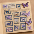 butterfly vintage stickers, retro stamp journaling sticker, scrapbook stamp pack, purple butterfly stickers, pen pal decoration supplies, antique sticker sheet, bullet journal stationery, floral postal stamp sticker, XCF7 XCF8 stickers, aesthetic journaling accessories.